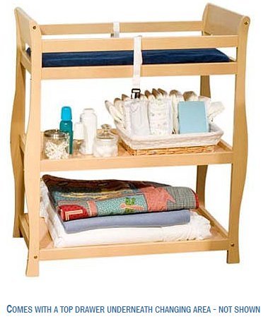The Haven Baby Changing Table w/ Drawer by Delta is Solid hardwood with a classic natural finish. Open design for easy accessibility. One top drawer and two fixed shelves for storage & changing area is equipped with built-in safety strap. Meets all US legal safety standards.
